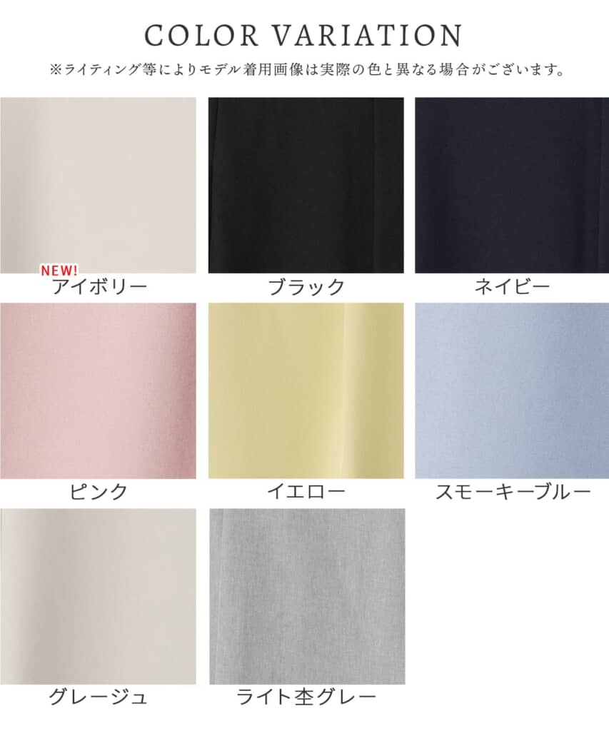 サイズ展開はSSから3Lまでと豊富で、カラーはブラックやネイビーなどのベーシックカラーから、スモーキーブルーやグレージュなどのニュアンスカラーまでそろっています。価格は税込2680円とリーズナブルなので、色違いでそろえるのもおすすめです。