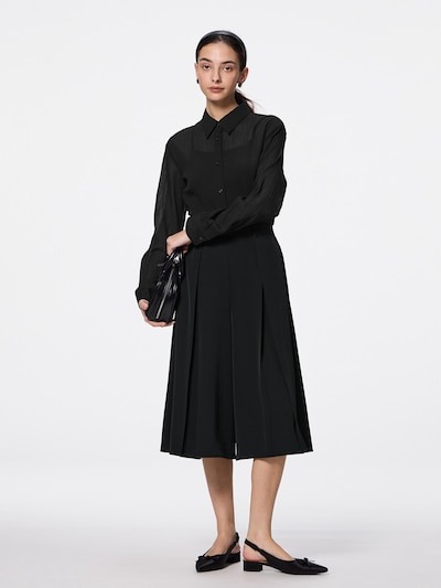 ウエストは細めのゴム仕様で、すっきりとした印象を保ちつつ、快適な着心地を実現。裏地付きで透け感を気にせず着用できるのもうれしいポイントです。カラー展開も豊富で、ブラックやギンガムチェックなど、コーディネートの幅を広げてくれるラインナップ。価格は税込2990円で、カジュアルなTシャツと合わせてデイリーに、ブラウスと合わせてきれいめスタイルにも活躍する、着回し力抜群のスカートです。