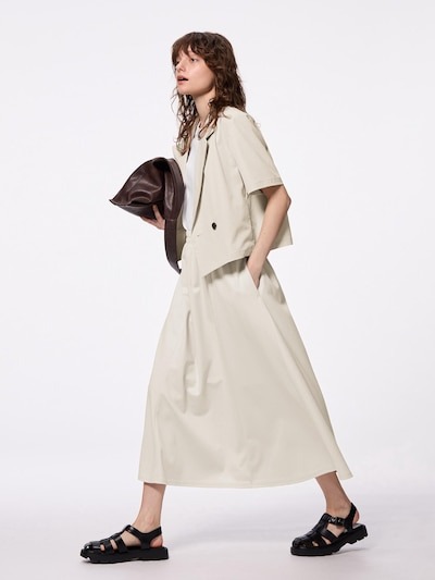 第1位は「ティアードマキシスカート」でした。春夏の装いにぴったりな軽やかさと、大人のかわいらしさを兼ね備えた一着です。ナチュラルな風合いの素材を使用し、4段切り替えのティアードデザインがほどよいボリューム感を演出。裾に向かって広がるマキシ丈のシルエットが、歩くたびにふんわりと揺れ、かわいらしさを引き立てます。