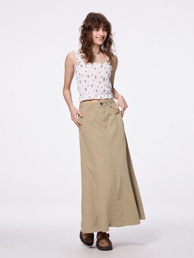 価格は税込み2990円とリーズナブル。デニム素材ながらも軽やかで柔らかい履き心地のこのスカートは、スタイルがよく見えると評判で、カジュアルからきれいめまで幅広いスタイリングに対応できる万能アイテムといえそうです。