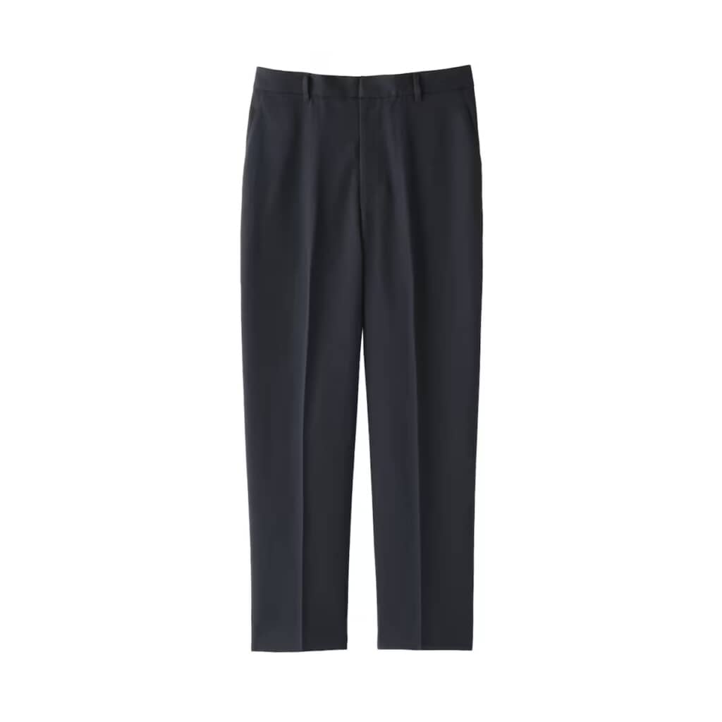 無印良品の「婦人 撥水 テーパードパンツ」はテーパードシルエットが特徴的な使いやすいアイテム。フロントにセンタープレスを施すことでレッグラインをシャープに見せ、とくにきれいめな装いにぴったりです。