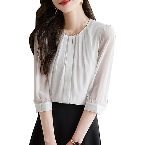 10位:[Lalapala] シャツ ブラウス レディース シフォン 上品 トップス ゆったり 無地 着痩せ 大人 おしゃれ エレガント 着回し 七分袖 裏地付 日常 オフィス カジュアル 通勤 ビジネス デート ママさん 大きいサイズ 春 秋