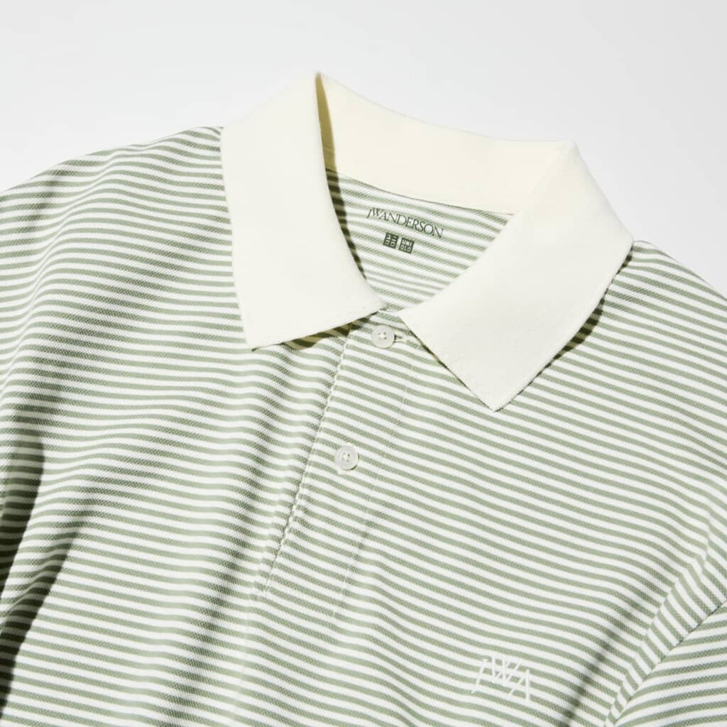 シルエットはほどよくゆとりのある男女兼用型。襟のリブ幅を調整し、より上質に見えるよう仕上げられており、胸元にはJW ANDERSONとのコラボロゴ刺繍や、ボタンにもブランドロゴが施されることで、さりげないアクセントを加えています。