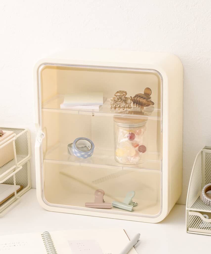 3COINSの「マルチクリアボックス棚付き」は、ホコリや汚れを防ぎ、収納したアイテムを長くきれいな状態で保てるボックス。付属の棚を使えば小さな作品を整然と並べられ、気分やコレクションに合わせてレイアウトを変えられます。取り外せば背の高い作品を縦置きで展示することも可能。同一ボックスを安全に二段までスタッキングできるので、省スペースでもコレクションを増やせます。