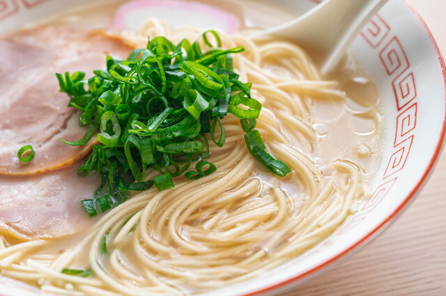 第1位は「福岡県」でした。福岡県の代表的なご当地麺といえば「博多ラーメン」。豚骨を長時間煮込んで作る白濁スープに、低加水の細麺を合わせた濃厚な一杯で、「替え玉」を追加して楽しむスタイルでも知られています。