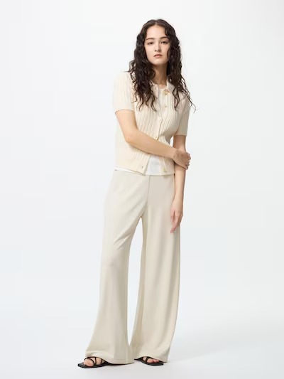 ユニクロから販売されている「クレープジャージーストレートパンツ」が、シルエットがきれいでオン・オフ問わず履けると人気を集めています。