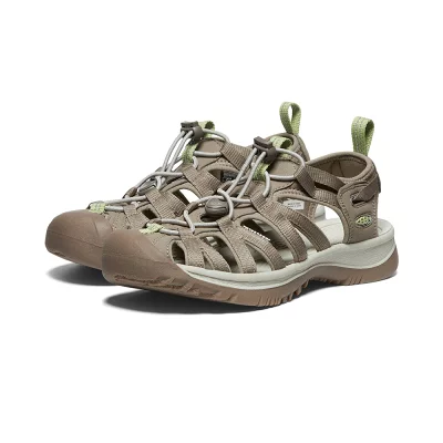 「ウィスパー」(WHISPER)は水辺やアウトドアで安心して歩ける軽量サンダル。女性の足にフィットするよう、専用の型を使用して製造されています。フェミニンなデザインながら、つま先を保護する形状やフィット感向上のために解剖学的にデザインされた中足部、しっかりとしたグリップ力とクッション性を確保したソールなど、機能的な設計が特徴です。