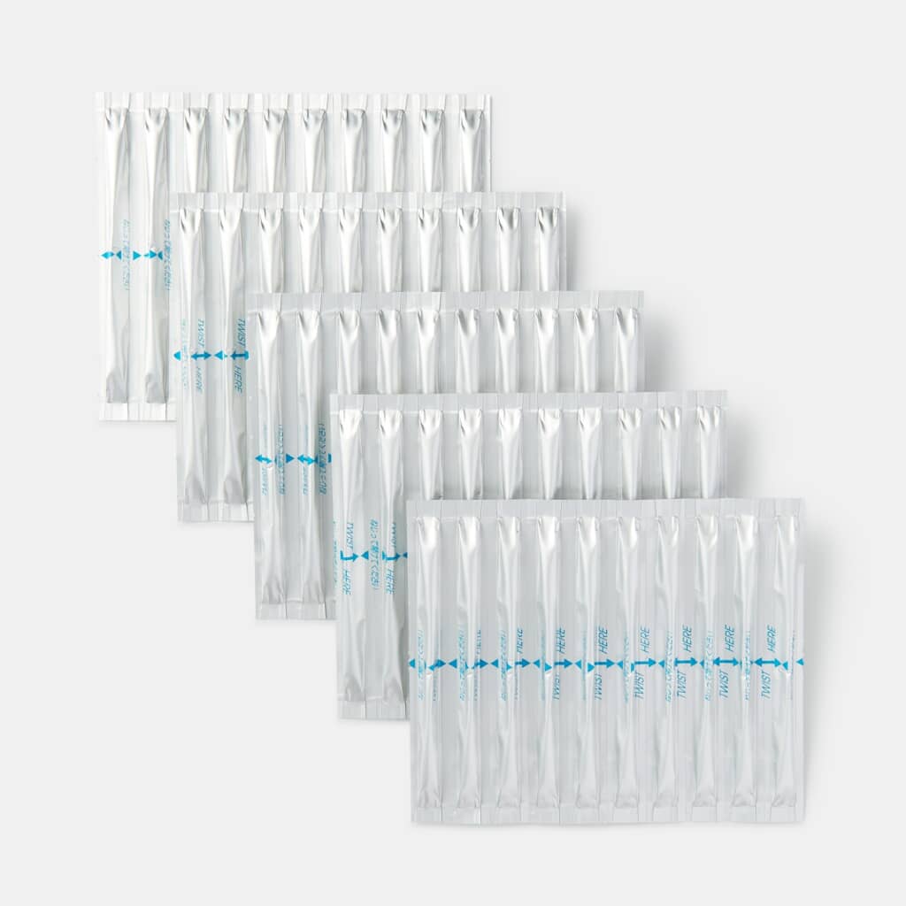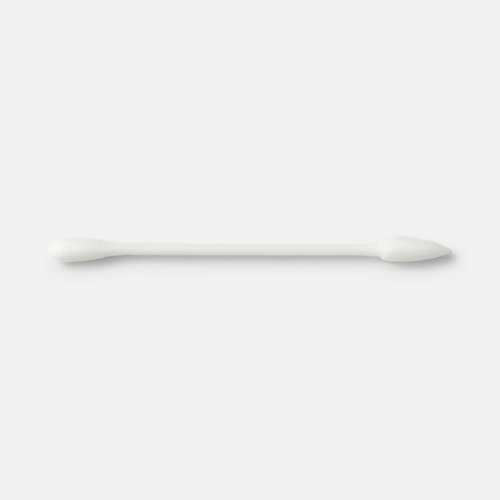 無印良品の「クレンジング綿棒(大容量)」は、コットン100%の綿先にクレンジング液を含ませたポイントリムーバー。個包装だから乾きにくく衛生的で、ポーチに入れてもかさばりません。片側は細芯、もう片側は丸芯と形状が異なり、アイラインのはみ出しやマスカラのダマ取り、リップ輪郭の修正まで1本で対応します。軸にはしなやかなで折れにくく、繊維残りもしにくい設計。外出先のメイク直しはもちろん、ネイルのはみ出し除去や細部の掃除など多用途に活躍します。大容量タイプは税込899円で、50本入り。10本入りタイプは税込190円で販売しています。