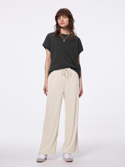 GUから販売されている「リブプルオンパンツ(丈標準68.0~72.0cm)」が、楽に履けるのにキレイめにもカジュアルにも合い、使い勝手がいいと人気を集めています。