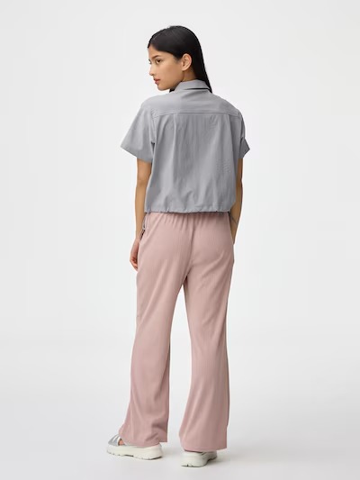 GUの「リブプルオンパンツ(丈標準68.0~72.0cm)」は、リブ素材ならではの柔らかなフィット感が特徴のアイテムです。ウエストはゴム仕様のプルオンタイプなので、さっとはけて着脱も快適。わずかに広がるフレアシルエットへアップデートされ、足首をすっきり見せつつ脚長効果も狙えます。カジュアルにもきれいめにも合わせやすく、日常のリラックスタイムから外出まで幅広く活躍。カラーは6色展開で、6月26日までは期間限定価格の1490円で販売されています。