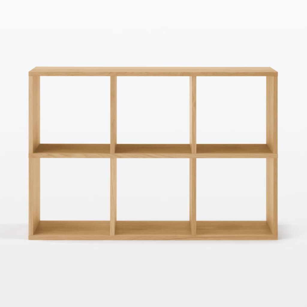 「スタッキングシェルフセット・3段×2列・オーク材」は、縦でも横でも利用でき、使いやすいスタッキングシェルフ。本棚や飾り棚としてだけでなく、間仕切りとしても利用可能です。