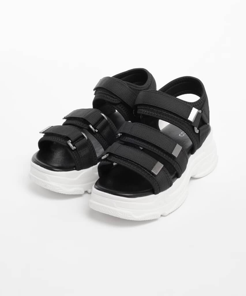 ハニーズの「金具使い厚底サンダル」(税込2980円)は、スポーティでスタイリッシュな厚底プラットフォームタイプで、夏コーデに映える一足です。トリプルストラップベルトに金具をあしらい、足幅に合わせてマジックテープで調整できるホールド感が魅力。厚底ながらクッション性が高く、長時間の外出やフェス、BBQでも疲れにくい設計です。