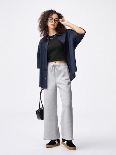 第2位は「スウェットバレルレッグパンツ」でした。スウェット素材のラクさと、今っぽい立体シルエットを両取りできるアイテムです。膝下に斜めの切り替えを入れることで、樽(バレル)のように丸みを帯びたワイドラインを構築。裾に向かって自然に締まるため、着心地はスウェットでも“部屋着感”は出にくく、街でも映える一本に仕上がっています。カラーはグレー、ピンク、ブラック、ナチュラルの4色展開。価格は税込2990円となっています。