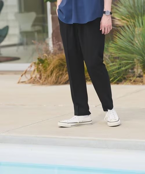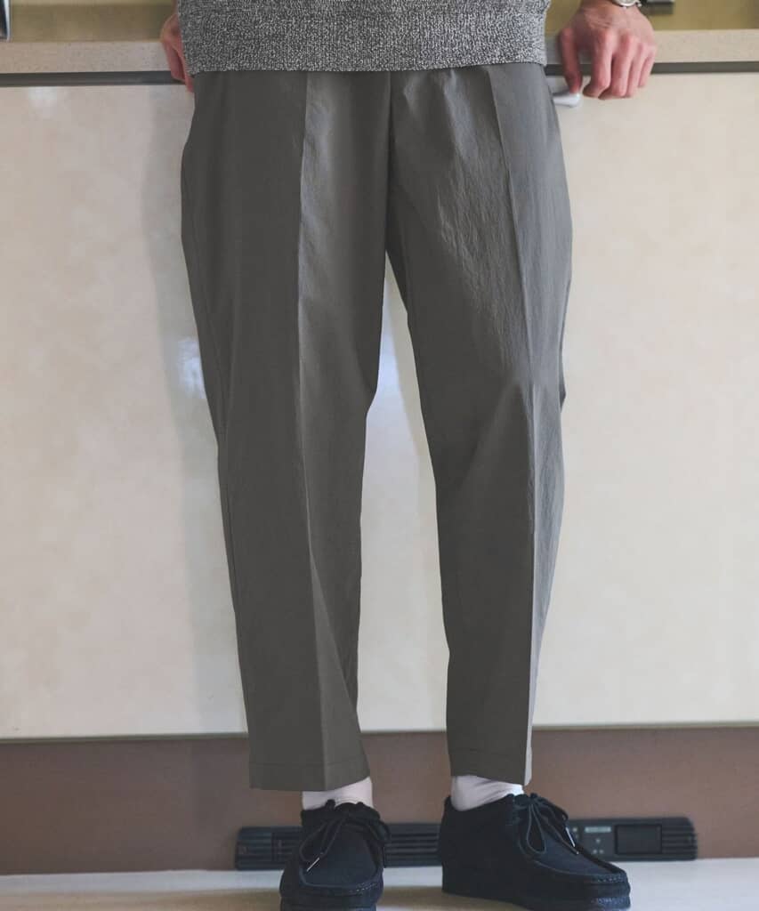「UNITED ARROWS green label relaxing(ユナイテッドアローズ グリーンレーベル リラクシング)」から販売されている「ウォッシャブルトロ 2プリーツ 9分丈 ユーティリティパンツ W1 ―ストレッチ・防シワ―」が、ゆったり履けて汗をかいてもベタベタせず、夏に重宝すると人気を集めています。