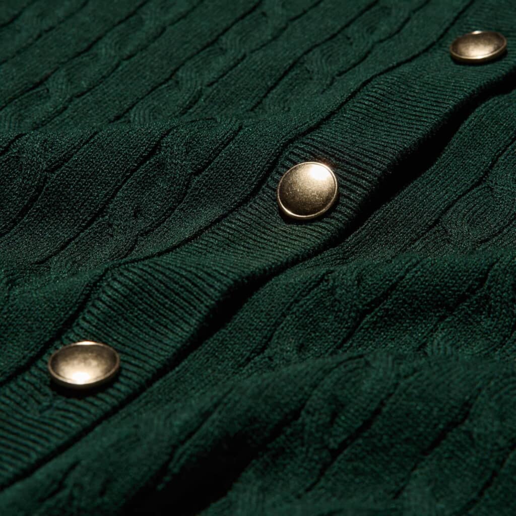 本記事では、「ケーブルメタルボタンカーディガン(半袖)」について紹介します。