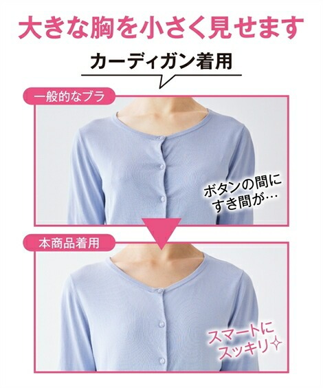 購入した人からは「ちょっとやせた? と言われた。邪魔な胸がコンパクトに収まって嬉しいです!」「もっと買っておけばよかった。一番着ているインナーかもしれません」「今の時期着ていても暑くない。シャツの下からちらっと見えても、下着っぽくない」「とても良いです! バストが抑えられてシルエットが綺麗になるし、ワイヤーがないので長時間の着用も問題ありませんでした」「胸の大きくてシャツのボタンがスッキリ留まらない人にオススメです! これを着るようになってからは、シャツのボタンとボタンの隙間からチラ見えしてしまう不安がなくなりました」といった声が寄せられています。
