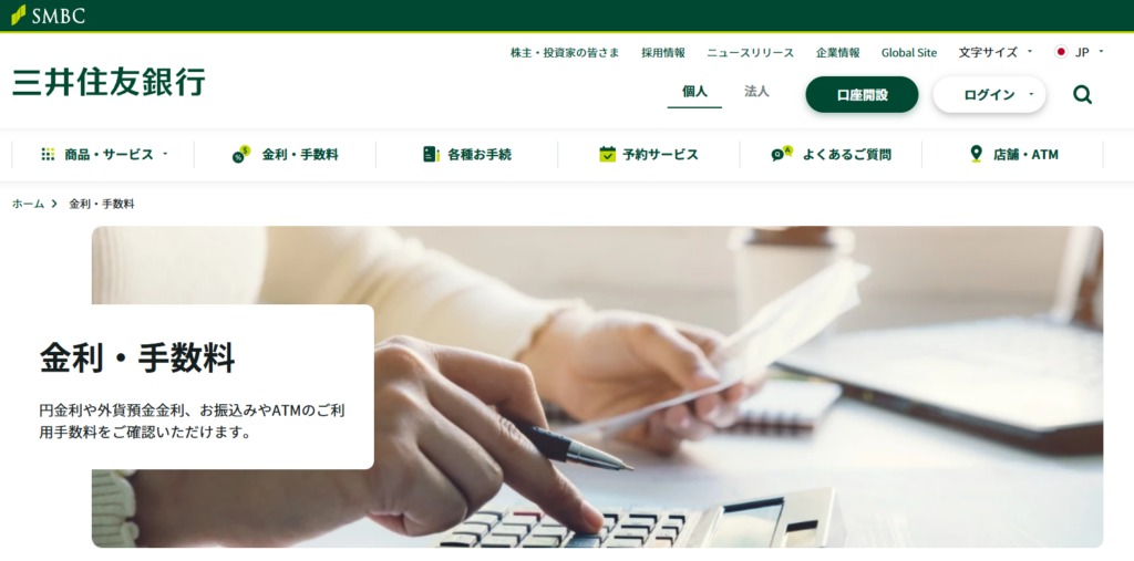 同社が提供する個人向けサービスであるOliveのアカウントを契約すると、同銀行本支店ATMや三菱UFJ銀行店舗外ATMでのATM時間外手数料が無料となる特典を用意。また、「SMBCポイントパック」で所定の条件を満たすと、セブン銀行やイーネット、ローソン銀行などのコンビニATMでも手数料が月最大3回まで無料となります。