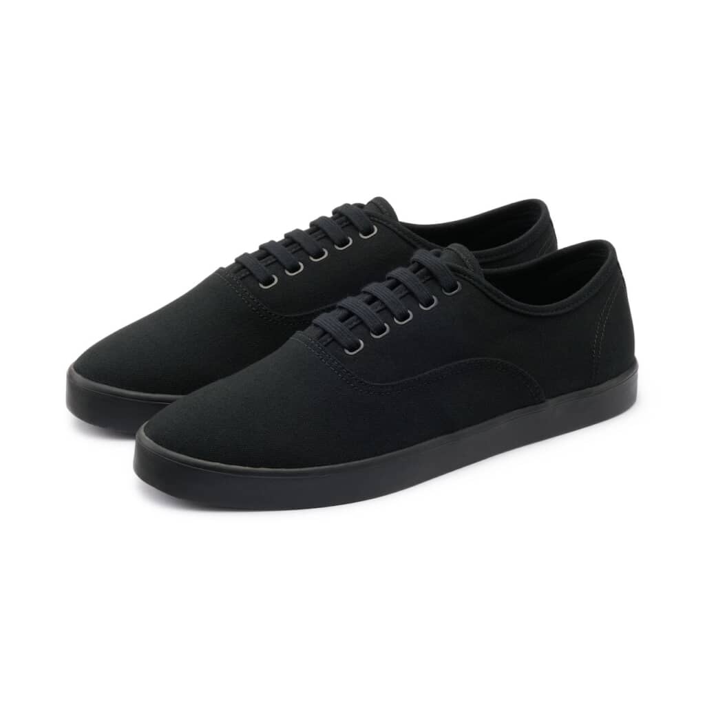 無印良品の「婦人 柔らかい中敷を使用した 撥水キャンバススニーカー」は、綿100%キャンバスにはっ水加工を施し、急な雨でも安心できる一足です。クッションインソールが足裏への衝撃を和らげ、長時間歩いても疲れにくいのが魅力。ハトメを楕円型にすることで靴ひもがねじれにくく、甲の内側ゴムと2WAY仕様で紐を外せばスリッポンとしても履けます。ベーシックなオフ白やチャコールグレー、黒の合わせやすいカラー展開で、価格は税込3990円。デイリーから旅行まで活躍します。