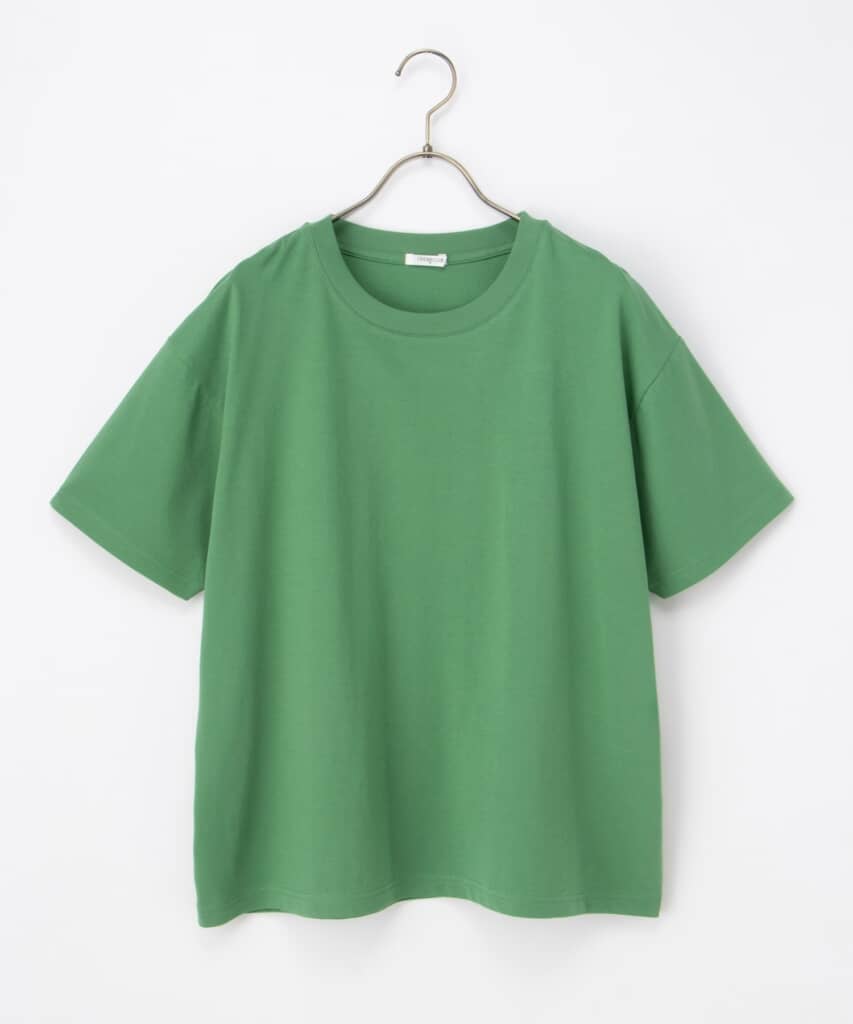 Honeys(ハニーズ)の「きれいめTシャツ」は、シンプルで上品なデザインが魅力の、大人カジュアルにぴったりな一枚。ネックラインはすっきりとしたクルーネックで、裾は腰まわりに自然にかかる丈感に設計されており、インでもアウトでもバランス良く着こなせます。