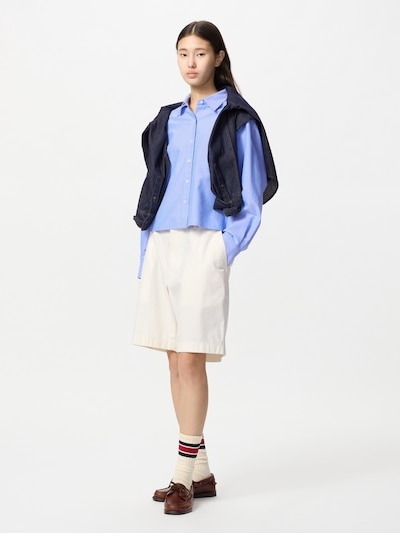 GUの「スウェットショートパンツ」は、リサイクルポリエステルと綿を使用した軽やかなスウェット素材で、快適な着心地が魅力のアイテム。ウエストは総ゴム仕様で外側に調節用のひもが付いており、イージーにはきやすいデザインとなっています。