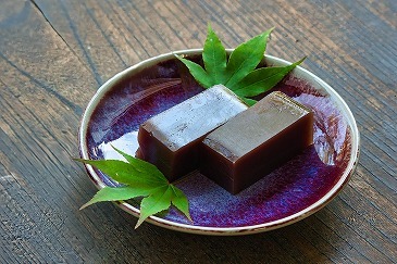 香ばしく風味豊かな落雁、粒あん入りのしっかりとした羊羹、白玉粉を使った柔らかい求肥を三層に重ねた構成が特徴。諸越粉と呼ばれる小豆を挽いた粉を使用した落雁が上品な香ばしさを演出しています。