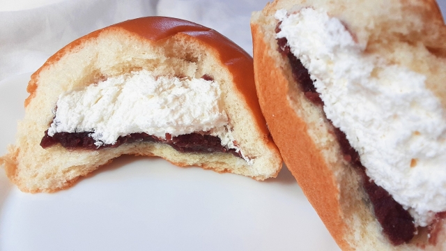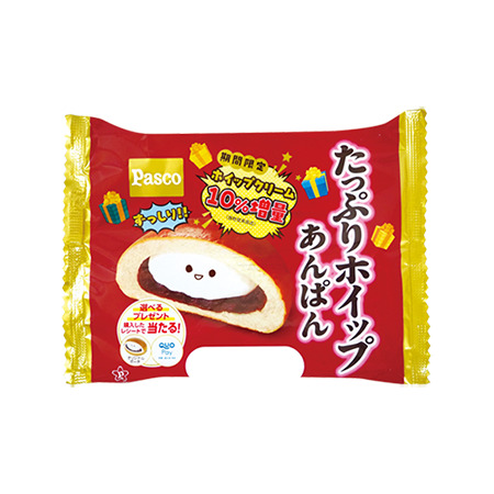 たっぷりホイップあんぱんは、しっとりしたパン生地でこしあんを包み込んでいることが特徴。そこにボリュームたっぷりのホイップクリームが加わり、1個で食べごたえ十分な商品となっています。