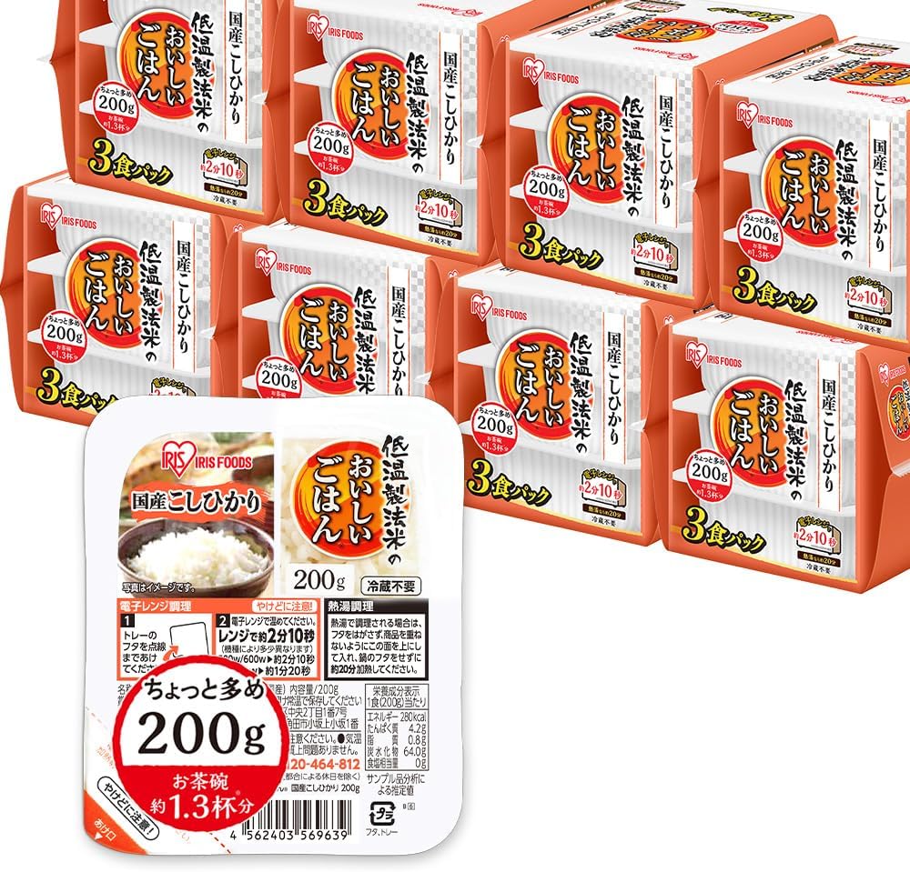 炊飯や洗い物の手間が省け、電子レンジで温めるだけですぐに食べられるパックご飯。常温で長期間保存できるため、忙しい日や非常時の備蓄にも適しています。