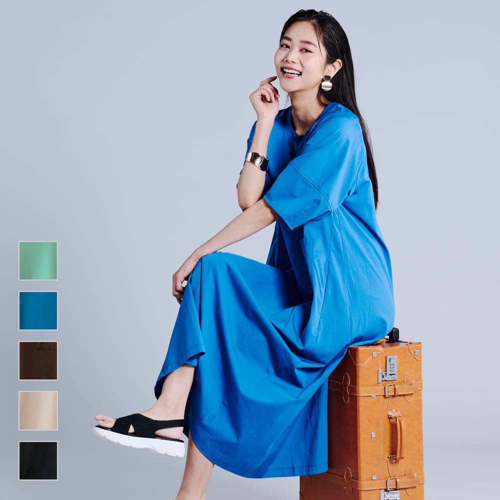 レディースドライサイドポケットランタンスリーブワンピース