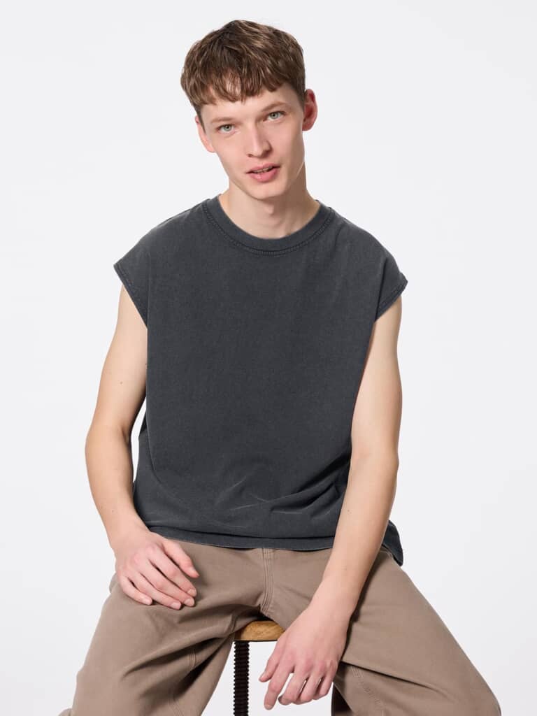 GUから販売されている「ウォッシュドスリーブレスT Q」が、着心地がよくリアルなヴィンテージ感がおしゃれだと人気を集めています。
