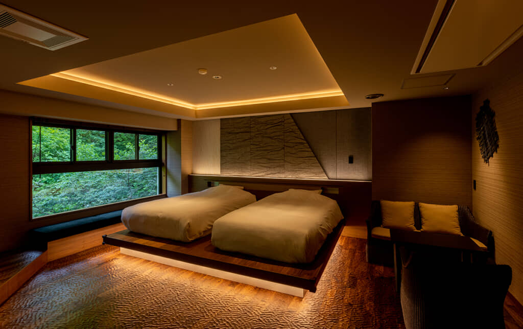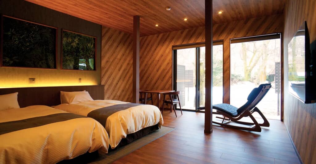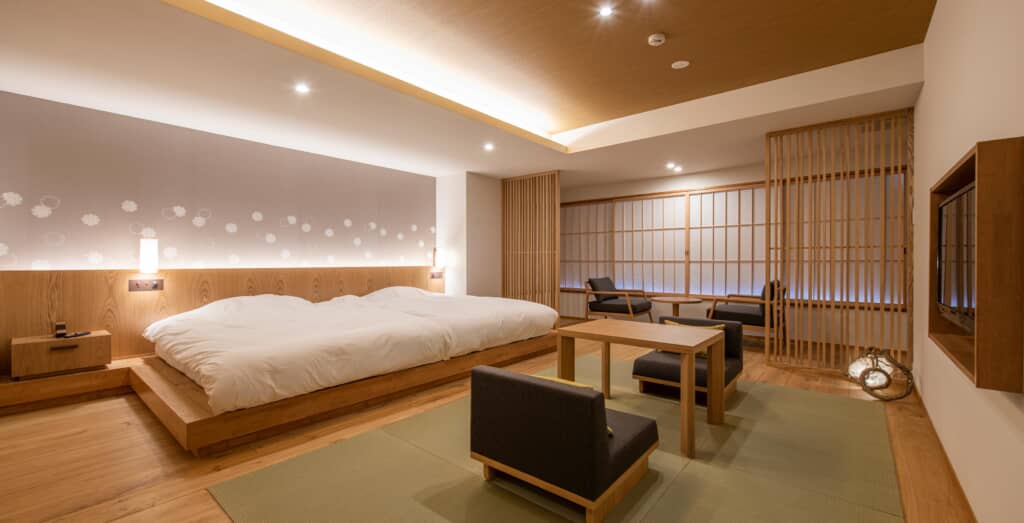 古民家の佇まいが感じられる「ryugon」は、南魚沼市坂戸に位置する旅館です。自然とのつながりを大事にし、庭園に面した露天風呂が設けられた和風建築の「Villa Suite」に、価値のある建材がふんだんに残され、シンプルながらも穏やかな時間を過ごせる「Classic」、家族やペット、グループでのパーティなどに向いた古民家一棟貸しの「Private Villa」といった客室が用意されています。2023年度のグッドデザイン賞を受賞した施設です。