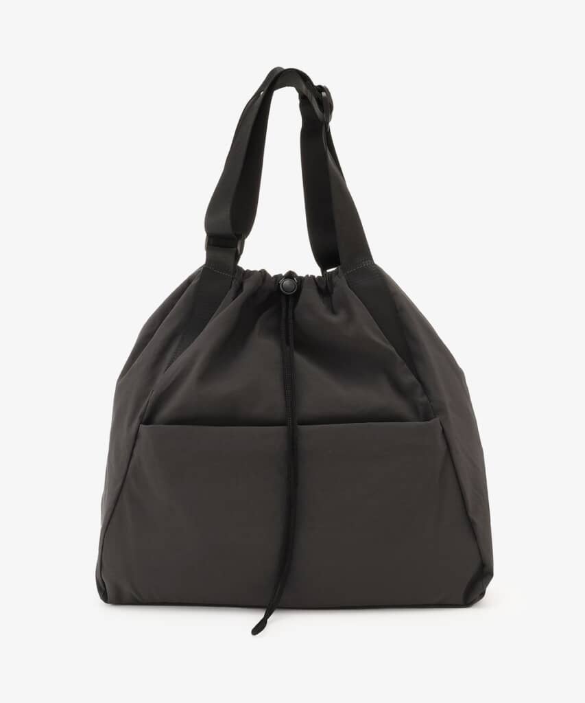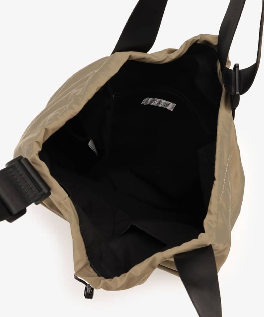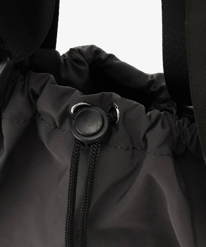 マチは広めに設計されていて、かさばる荷物もしっかり収納できるところがうれしいポイント。また、巾着タイプの開口部が「キュッと閉じる」仕様なので、中身が見えにくく、安心感があります。外側のファスナー付きの大きなアウトポケットは、スマートフォンなど頻繁に取り出すアイテムをサッと収納できるつくりに。内部にも複数のポケットが備わっています。