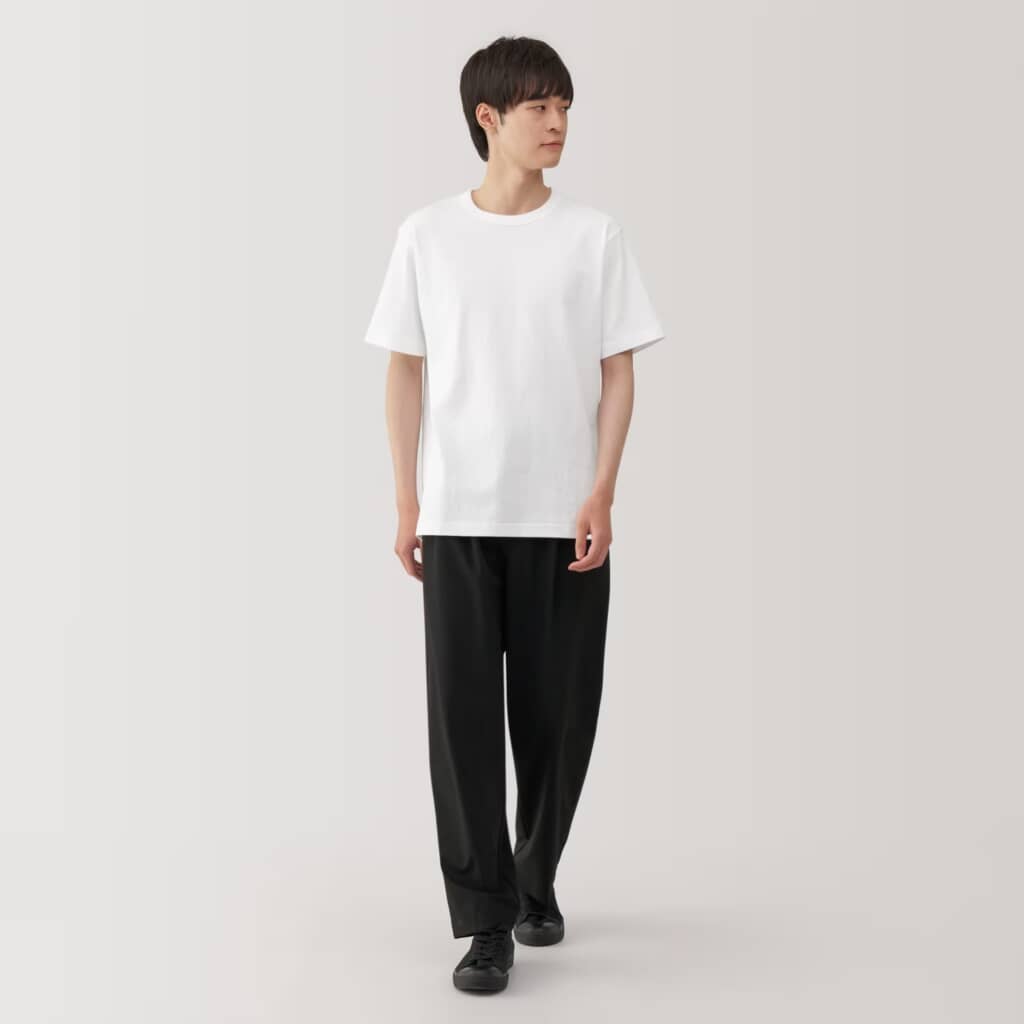 無印良品から販売されている「紳士 洗いざらし太番手クルーネック半袖Tシャツ」が、厚手の生地とほどよくゆとりのあるシルエットで高評価を集めています。