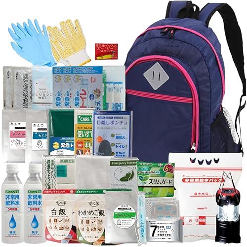 防災防犯ダイレクトの「地震対策30点避難セット」は、防炎・防水ターポリン製リュック(約14リットル)に一次避難必需品30点を収めた1人用モデル。ソーラーラジオライト、5年保存水、簡易トイレをはじめ実用性重視の内容で、反射材と蓄光材が夜間の視認性を確保します。重さは約5.5キロですが、クッション入りショルダーベルトで背負いやすい設計です。Amazonプライムデーセールで、価格は15%オフの1万9550円となっています(2025年7月10日時点)。