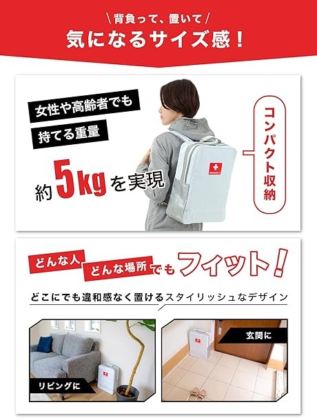 近年は災害が頻発し、しかも弟の住む1階の住居が冠水した体験もあったことから、防災グッズを準備しようと考え、このセットを購入しました。緊急時に何を持ち出せばよいか迷いがちですが、防災士が監修した必要アイテムが一式そろっている点が心強いです。また、あまり大きいと避難時に運びにくいと思い、長時間背負っていても負担が少ないコンパクトサイズを選びました。非常食は含まれていないため、このセットを基盤にして携帯食や常備薬などを追加してリュックの隙間に入れました!