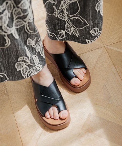 そんなニコアンドから登場している「オリジナル厚底トングサンダル」は、毎年人気の定番アイテム。デザインは、足の甲を程よく覆うシンプルなトング型。やわらかなレザー調の素材が特徴で、カジュアルすぎず上品な印象に仕上がっています。ソールには屈曲性に優れた軽量素材を採用しており、足の動きにしっかりフィット。クッション性もあり、長時間歩いても疲れにくいつくりになっています。厚底は高すぎず低すぎずの絶妙なバランスで、安定感を保ちながらも自然なスタイルアップ効果を発揮。足元から全体のバランスを整えてくれる頼れる一足です。