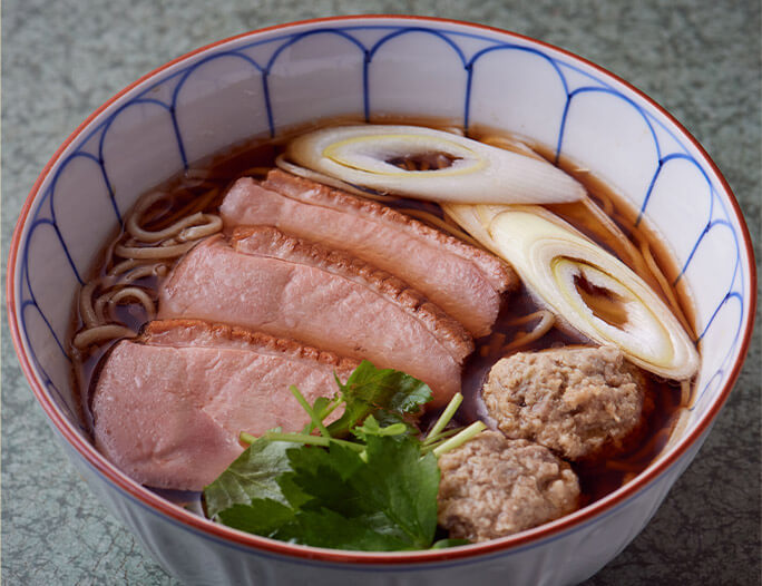 「そば居酒屋 寿美吉」では、複数種類のそばの実を使った二八そばや十割そばを提供しています。絶妙な力加減で素早くそば粉を練ることで、香ばしさのあるそばに仕上げられているのが特徴です。人気メニューの「黒宝豚せいろ」は、黒豚の旨みが溶け込んだつゆが絶品のそば。京鴨のロースや山椒を使用した鴨団子を堪能できる「鴨南蛮」のおいしさも抜群です。