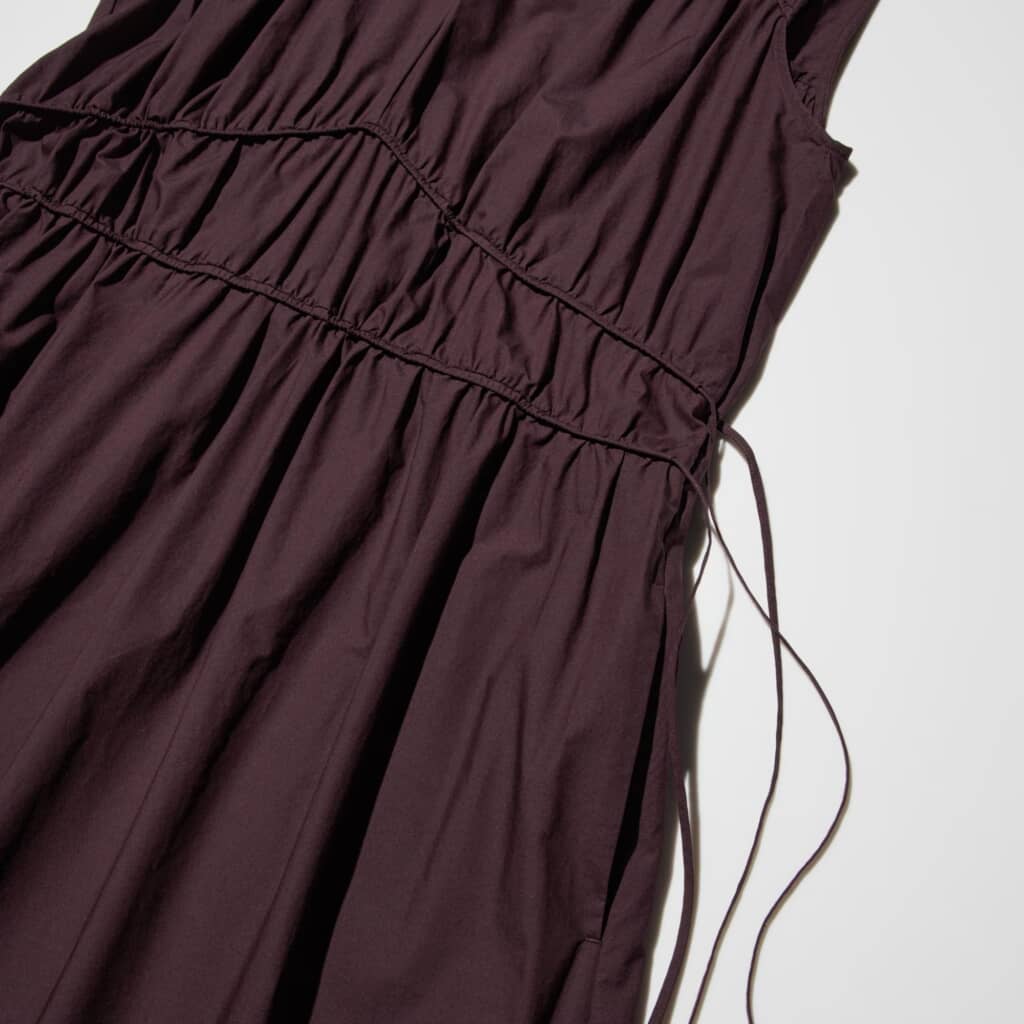 ユニクロから販売されている「コットンギャザーワンピース/ノースリーブ」が、高見えする上品さと、ウエストラインを調整できて細見えすると人気を集めています。