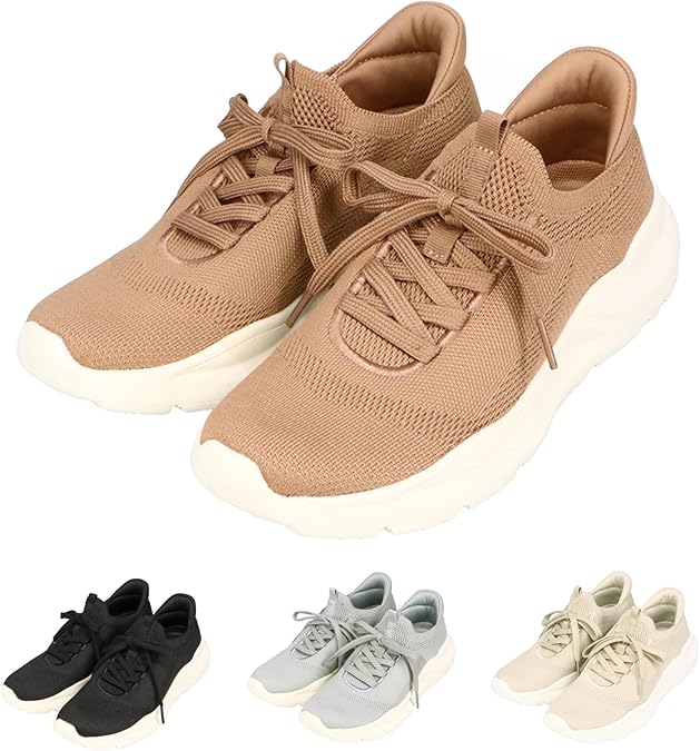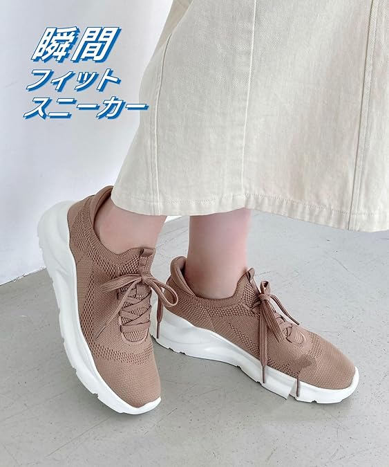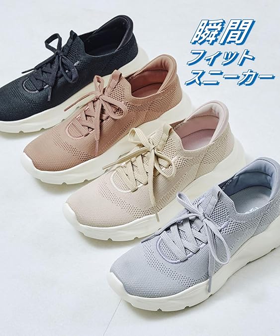 「瞬間フィットスニーカー/OT3757」は、伸縮性に富むニット素材を採用し、足全体をやさしく包み込むフィット感が特長です。履き口はゴムのように伸び、かかと芯を強化することで立ったまま手を使わずに着脱できます。4 cm厚のEワイズソールは傾斜が緩やかで安定感抜群。中敷には全面クッションを内蔵し、通気性の高いニットと相まって蒸れにくく、長時間の立ち仕事や旅行でも快適です。サイズは22.0〜26.0 cm(34〜42)展開、重さは37サイズで約202 g。価格は通常7700円(税込)ですが、2025年7月15日現在、公式オンラインショップではセール価格6160円(税込)で販売中です。カラーはブラック、ベージュ、ブルー、ピンクの4色展開で、くすみトーンが大人カジュアルにも通勤スタイルにもマッチします。