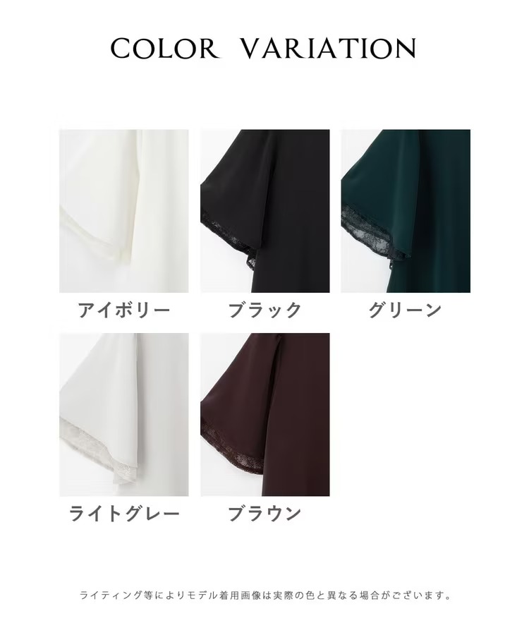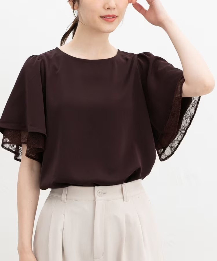購入した人からは、「レースの袖が揺れてかわいいです。生地がサラッとしていて涼しく着られます」「光沢があって、しっかりしています。かわいいので、もう一枚別の色も欲しくなります」「袖のドレープとレースが相まって、エレガントな雰囲気で着られるのがいい。また、裾をインしてもしなくてもシルエットがキレイなので、仕事にもプライベートにもどちらも違和感なく着られます。袖は肘上まであるので、二の腕もしっかりカバーしつつすっきり見せてくれます」といった声が寄せられています。