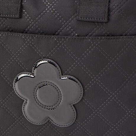 そんなマリークワントの「ピンソニックキルトデイジー 2WAYトート」は、デイリー使いにぴったりなトートバッグです。ブランドのアイコンでもある大きなデイジーパッチが目を引く、かわいらしいデザインが特徴です。糸を使わずに熱圧着で模様を付けるピンソニック加工を採用していて、格子柄が立体感を生み出しつつ、糸ほつれの心配がないのもうれしいポイントです。