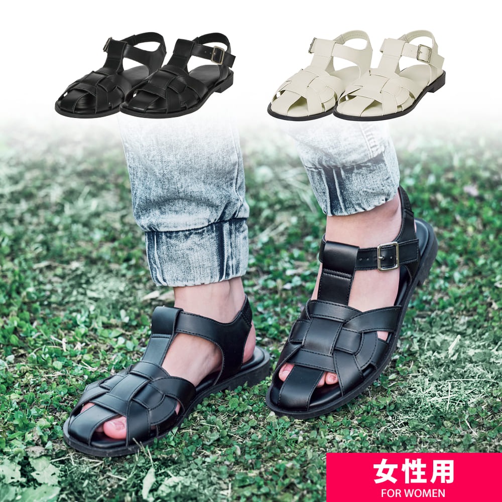 「レディースグルカサンダル」は、甲部分に合成皮革を編み込んだクラシカルなグルカデザインで、大人カジュアルにもきれいめコーデにもマッチします。ストラップは5段階調整可能で、踵側のゴムと相まってスッと脱ぎ履きしやすいのが魅力。インソールはクッション性が高く、フラットながら程良い厚みのソールが歩行時の負担を軽減。つま先と踵をしっかりホールドするため、サンダルにありがちな歩き疲れや靴擦れを防ぐ仕様になっています。カラーはブラックとホワイトの2色、サイズはS・M・Lの3展開で、税込1900円という高コスパ。アッパーの程良い抜け感が蒸れを抑え、素足でもソックス合わせでも映えるため、真夏のタウンユースからキャンプ場まで幅広く活躍します。