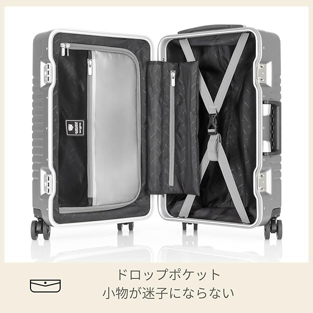 「ACTUS(アクタス)スーツケース フロントオープンS 74-30490」は、ボディの半分ほどまで開く、フロントオープン機能が魅力のスーツケース。さらにフロントオープン部分は、フタ側にはメッシュポケットが2つ、仕切り側にはファスナー付きポケットを備えているため、必要なものがサッと取り出せます。また、カラーバリエーションが豊富なのもうれしいポイントです。