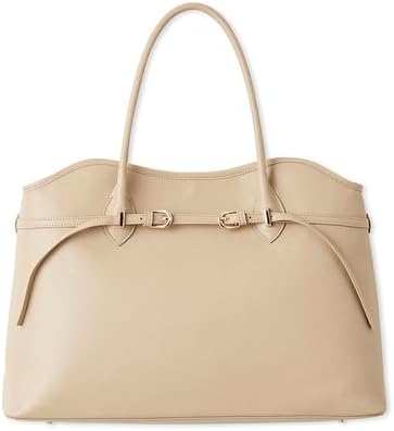 細ベルトとロゴ刻印入りバックルがポイントの「ソフトベルトトートバッグ」は、SNIDELらしいエレガンスを日常に落とし込んだ万能トートです。サイズはW440×H310×D140 mmで、書類やノートPCもゆとりを持って収納可能。開口部はマグネット仕様で中身が見えにくく、内側にはカード類を仕分けできるファスナーポケットを装備。素材はカラー別に表情を変え、ブラックはシボ感フェイクレザー、ベージュは艶感フェイクレザー、ブラウンはスエード調フェイクレザーを採用しています。シンプルデザインゆえ、同ブランドのバッグチャーム(SWGG251680ほか)でアレンジを楽しめるのもいいですよね。価格は税込1万6500円で、現在公式オンラインをはじめ各ECサイトで展開中です。