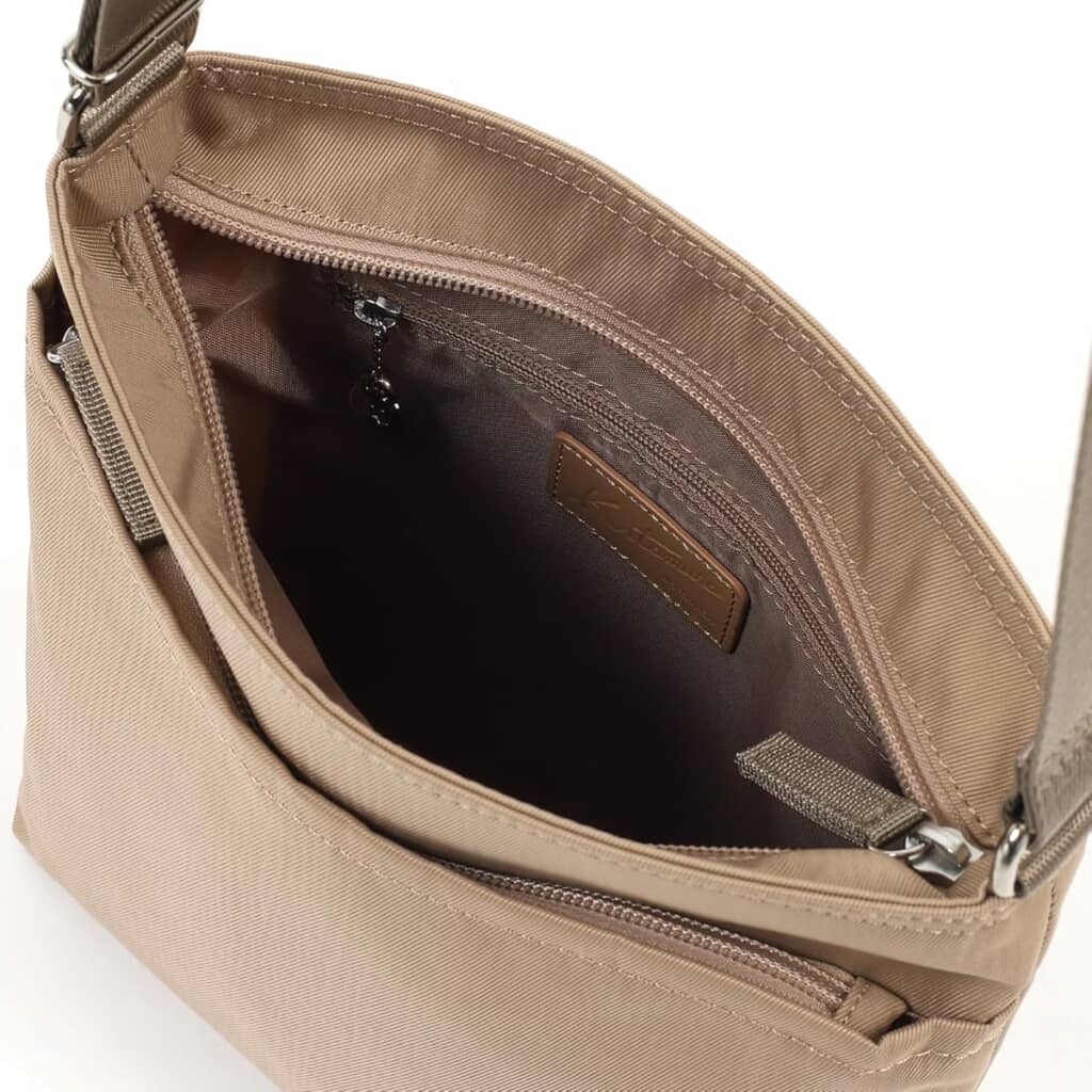 ポリエステル素材を採用した「ショルダーバッグ R‑0775 52521」は、たった220gの軽量設計のおしゃれなショルダーバッグです。サイズは縦24×横22×マチ8cm。前後に配置したファスナー付きとオープンタイプの外ポケット、内側2ポケットで小物を整理しやすく、メインルームはファスナー開閉で防犯面も安心です。ストラップの立ち上がりは33〜65cmの可変式で、体格や装いに合わせた調整が可能。ブランドシンボルのKマーク刺繍をワンポイントになっています。カラーラインアップは「サンドベージュ」「ダークブルー」「サックスブルー/ライトグレー」「オリーブ/ブラウン」の4種類。価格は税込1万1000円となっています。