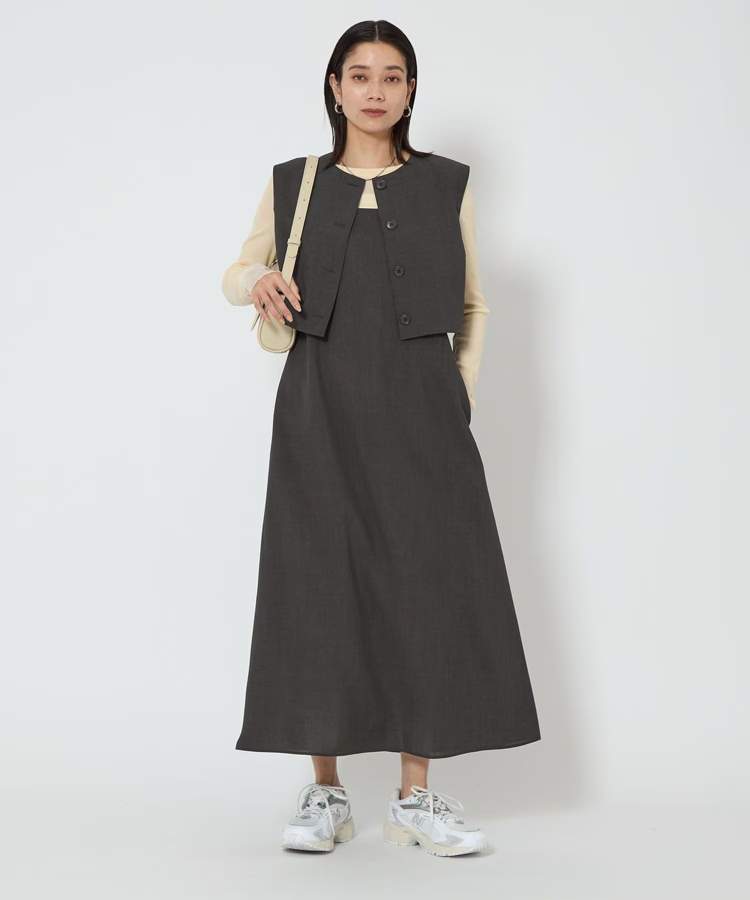 第2位は「Breeze Cool ティアード ワンピース」でした。軽やかな“Breeze Cool”素材を使用したアイテムで、通気性と吸水速乾性に優れ、さらっとした着心地を実現する暑い季節に最適なワンピースです。裾に向かって広がるフェミニンなシルエットと、高めのウエスト切替ですっきり見えるのが魅力。1枚でコーディネートがきまるので、さらっと涼しく着られるのもうれしいポイントです。