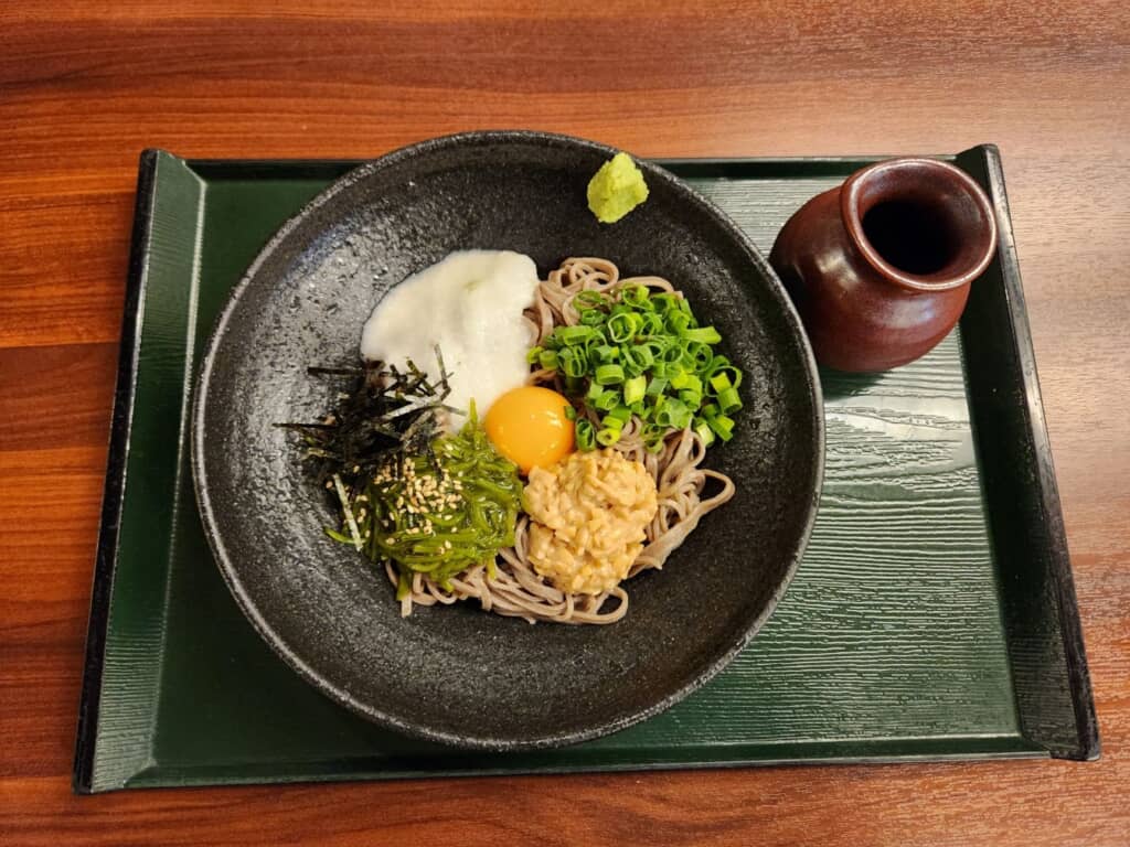 「手打ち蕎麦 銀杏」は、開放的でおしゃれな空間が広がっている人気店。そば粉は産地を限定せず仕入れ先を厳選し、石挽きによって自家製粉されたものを使用しています。店名を冠した「銀杏そば」は、温かいそばにトッピングされた揚げ餅や大根おろし、揚げ玉の絶妙な相性を楽しめるメニュー。冷たいそばに揚げ餅やみょうがなどが乗っている「銀涼そば」も絶品です。