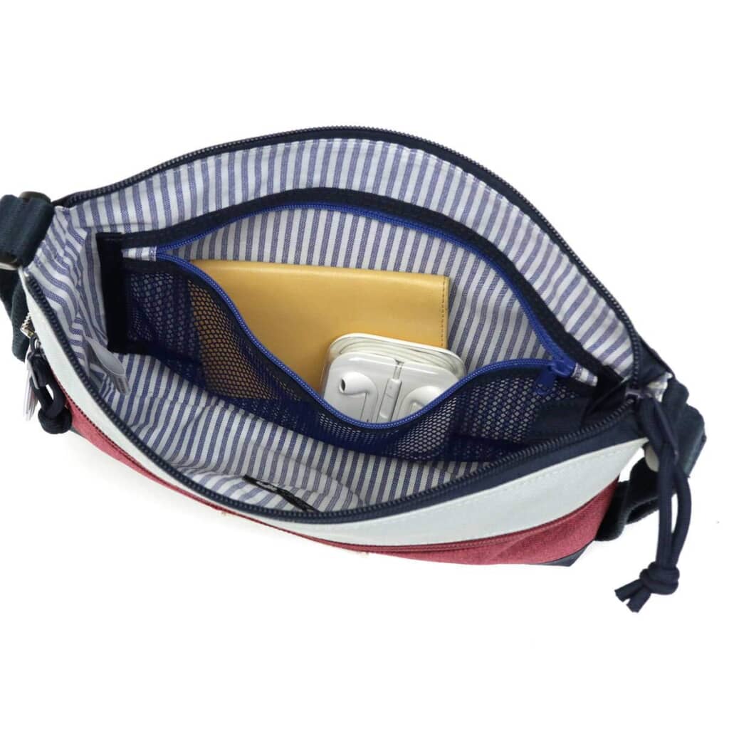 大きさは横25×縦17.5×マチ5cmで、ショルダーストラップは最大126cmで長さ調整が可能。旅行中のサブバッグとしても重宝します。重量は公称約220gと軽く、長時間の斜め掛けでも肩が疲れにくいのがポイント。カラーはブラック、ネイビー、トリコロールの3色で、カジュアルからきれいめまで幅広いコーデにマッチします。メーカー公表価格は税込5280円。コストパフォーマンスと北欧デザインを両立した万能サコッシュとして、男女問わず人気が高まっています。