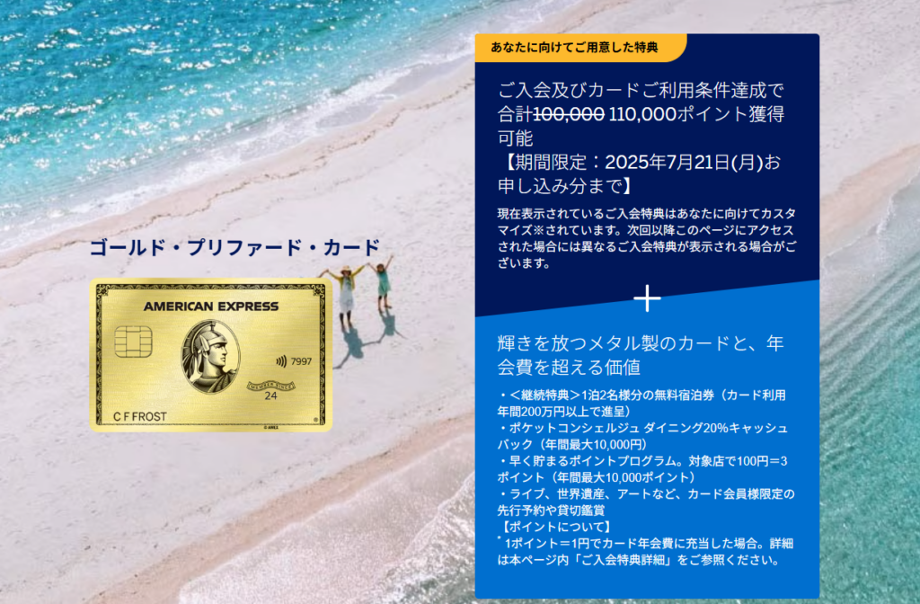 第1位:アメリカン・エキスプレス・ゴールド・プリファード・カード