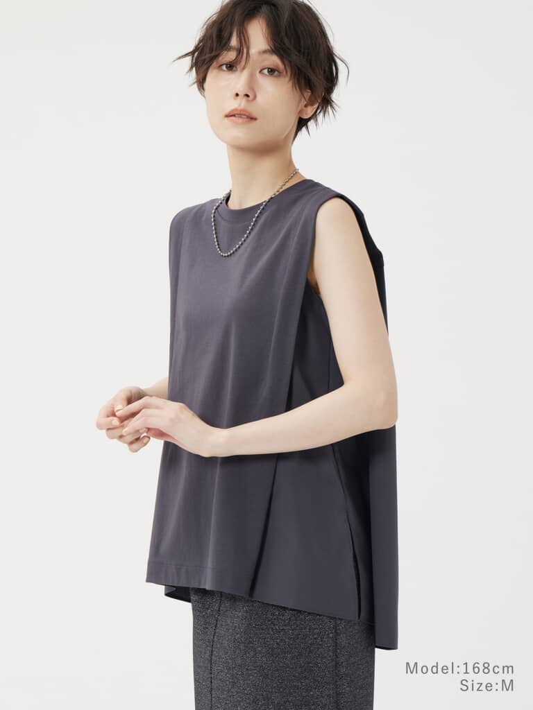 第18位:ファブリックコンビギャザーノースリーブTシャツ