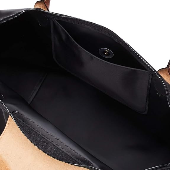 ロンシャンのアイコン「ル プリアージュ」コレクションは1993年に誕生し、日本の折り紙文化から着想を得た折り畳み構造が特徴です。Lサイズ(L1899089)は、底幅31cm×高さ30cm×奥行19cmとA4書類や13インチPCを余裕で収納できる大容量を確保しつつ、重量わずか約290g(カラーによって約346g)。ショルダーハンドル(長さ25cm)は肩掛けしやすく、開口部はファスナー+スナップで荷物を安全に保護します。